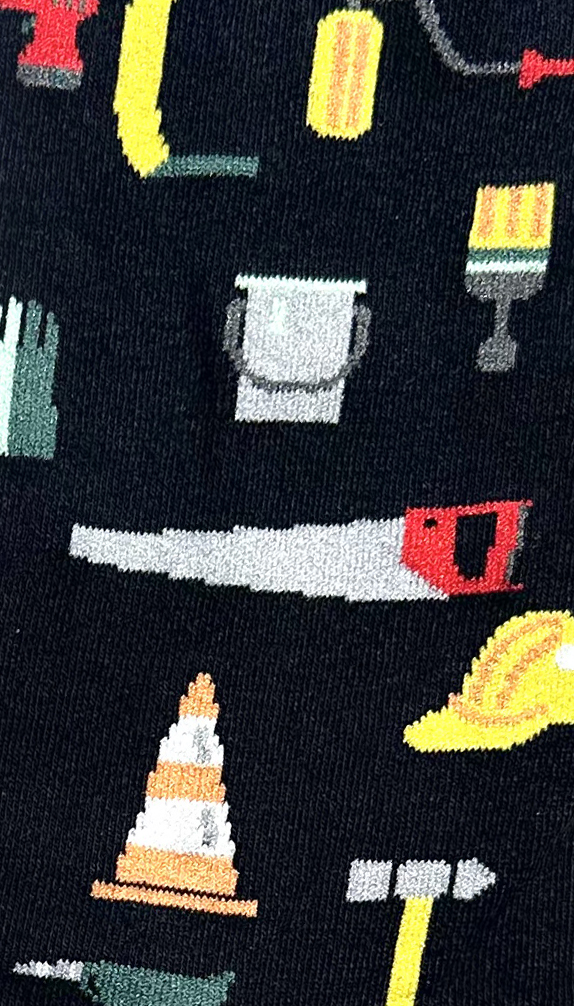 Socken „Werkzeug“: schwarz, gelb, rot, grün, weiß