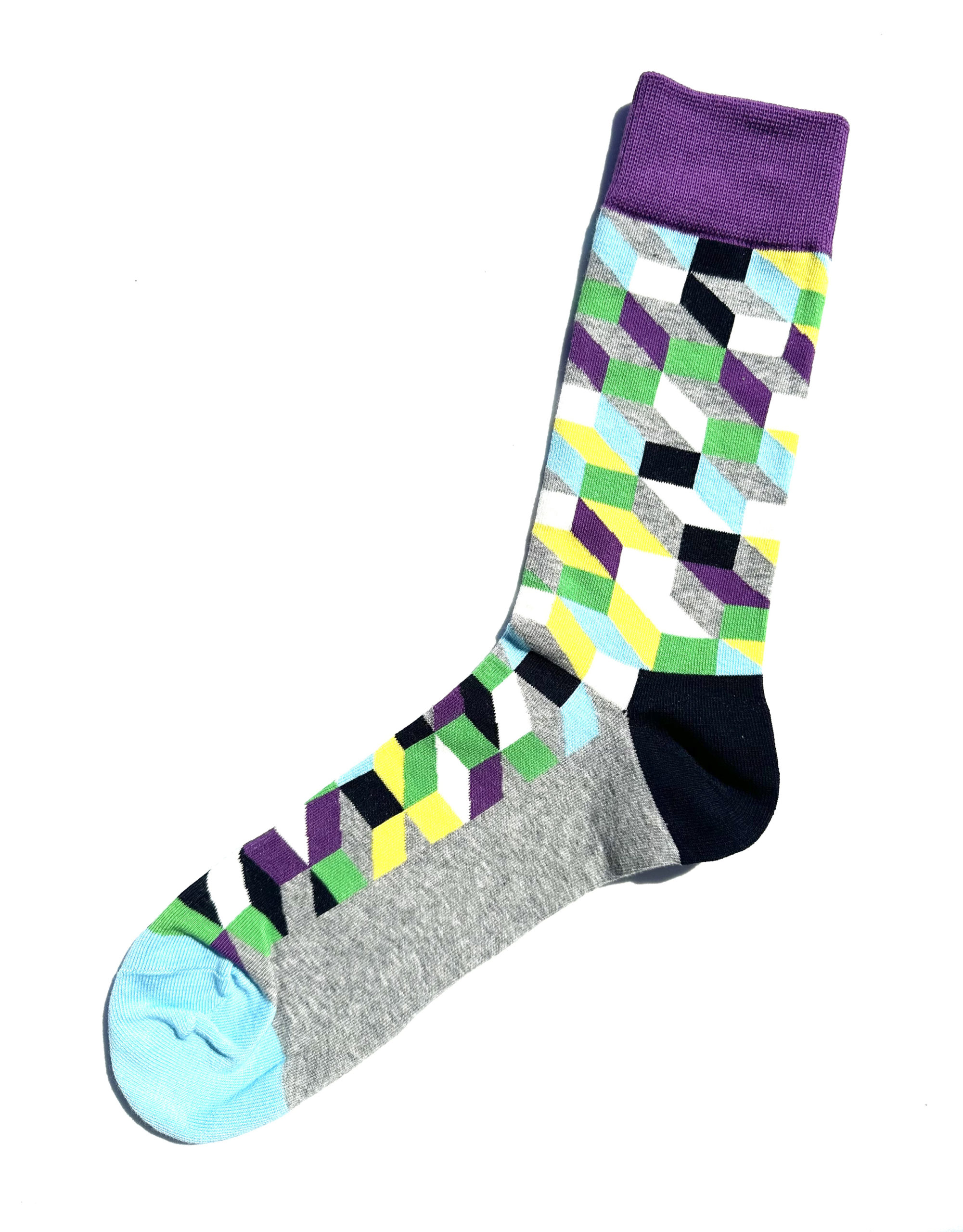 Socken Kalte Geometrie: schwarz, hellblau, gelb, grün und violett