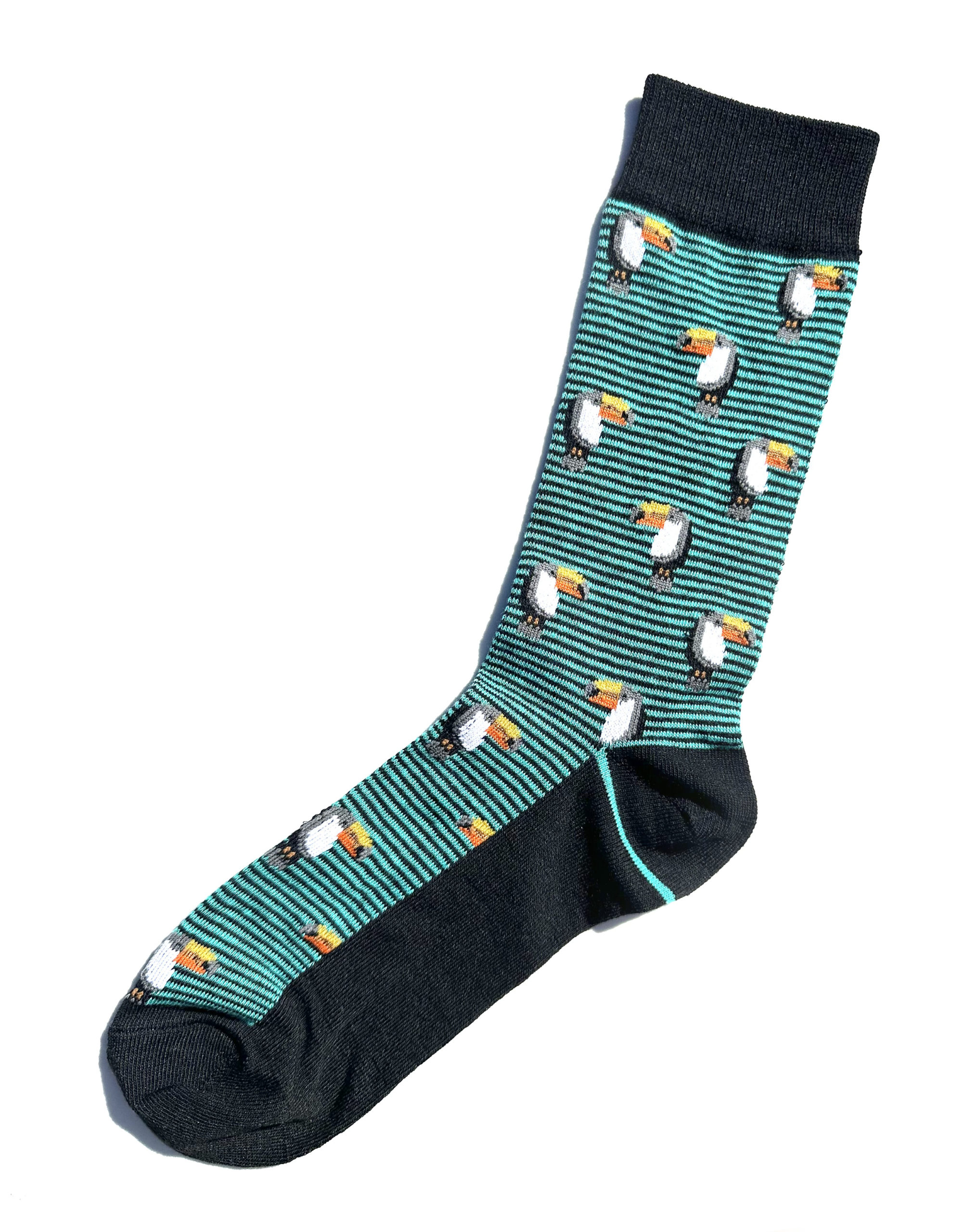 Gestreifte Toucan-Socken: schwarz, türkisblau, gelb und orange
